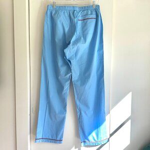 Morgan Lane "Tommy" pajama set in cornflower blue with red trim. Made with 100% pure cotton for a soft, crisp feel. The Tommy PJ is a unisex style and sizing is based on men's styling, so women should go down one size.