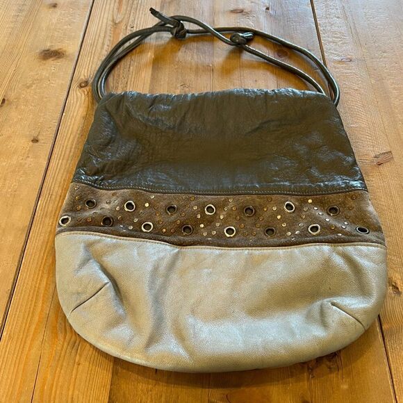 Morgan Le Fay Vintage Grey Leather and Suede Studded Bag