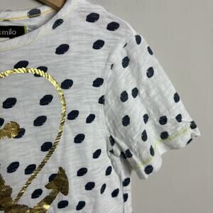 Polka dot tee with a gold heart anchor graphic on the front. Size is 5, VGUC.