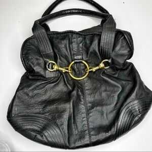 Made of soft lamb skin leather, polyester hot pink interior and large brass clasps on the front and bag of bag. Rolled handles make it comfortable to carry the bag by hand or on shoulder.