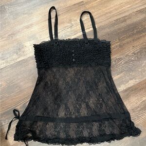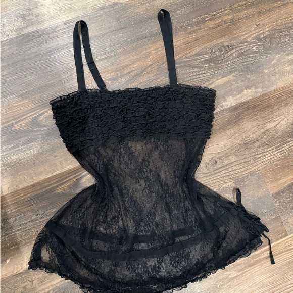Chic black lace top by Morgan Taylor. Features delicate lace design. Ideal for stylish layering.
