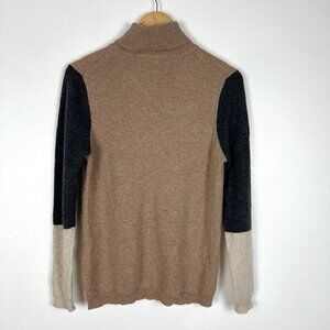 Morgan Taylor Cashmere Turtleneck Colorblock Sweater Womens L Neutral Old Money