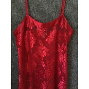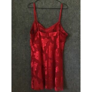 Morgan Taylor Chemise Nightgown Nightie XL Red Sheer Rose Spaghetti Strap Short