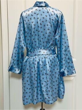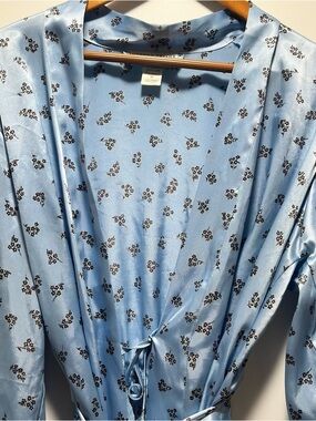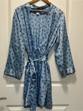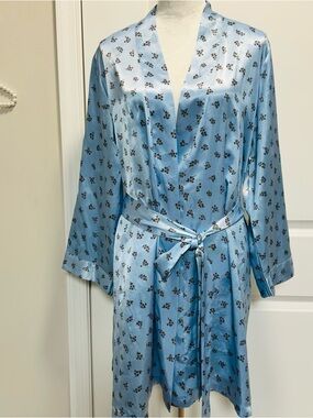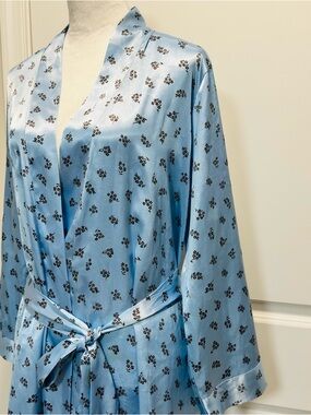 Morgan Taylor Intimates Satin Robe Womens Size M Blue Pockets Silky Luxurious