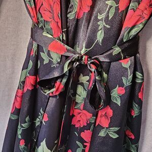 Morgan Taylor Intimates Women's M Peignor Set Black With Roses Robe & Nightie