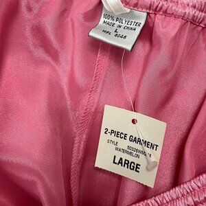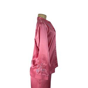 Morgan Taylor Luxurious Pink Satin Floral Embroidered Pajama Set Sz L - New