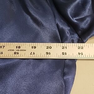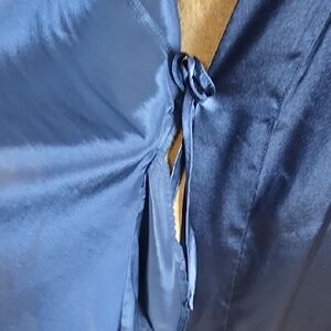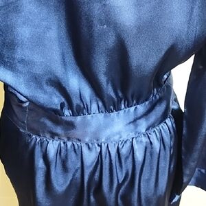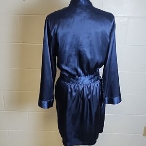 Morgan Taylor Navy Blue Satin Robe Wrap Style Pockets Sewn on Belt