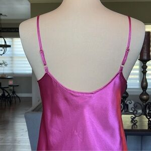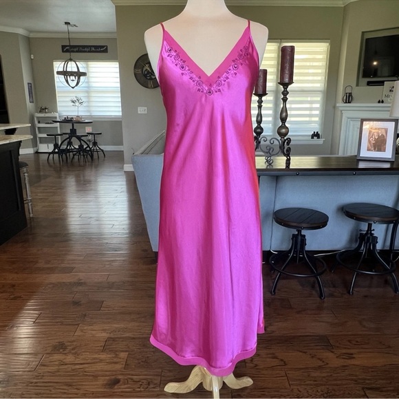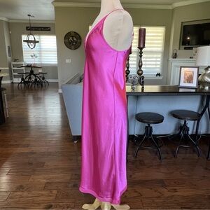 Morgan Taylor Pink Satin Long Night Gown Small Slip Dress Chemise Wet Look