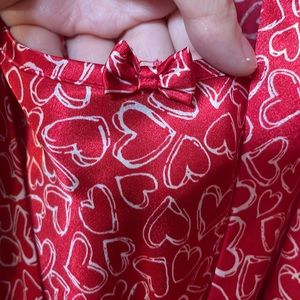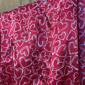 Elegant red robe with heart pattern. Soft and comfortable. Perfect for lounging.Could use a simple stitch on strap.