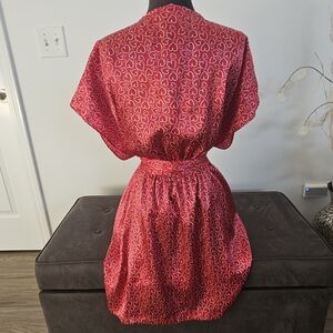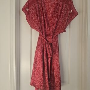 Charming red robe with heart pattern. Short sleeves and wrap tie waist, knee length, like new! Perfect for lounging.