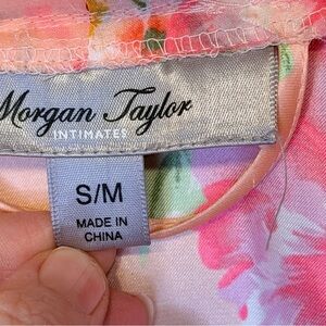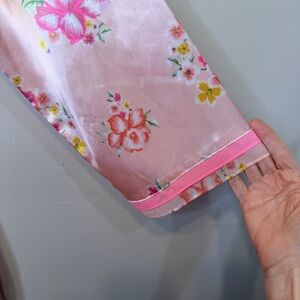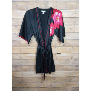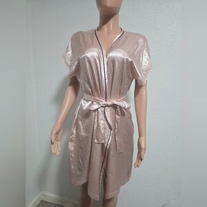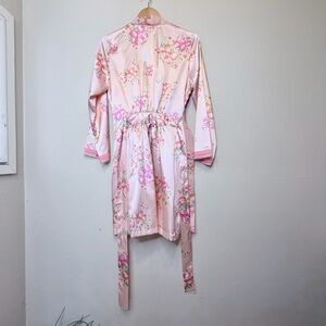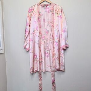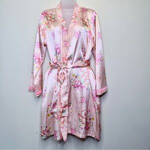 Morgan Taylor | Satin Pink Floral Hip Pockets Belted Mini Lingerie Kimono Robe