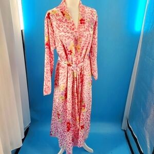 Morgan Taylor Intimates Satin Vibrant Floral Pattern Neon Pink Details Open Front Hip Pockets Belted Ruched Backside Long Sleeve Relaxed Comfy Cozy Cozycore Flirty Romantic Feminine Coquette Cottagecore Shabby Chic Valentine's Day Soft Girl Scandi Girl Baddie Mini Lingerie Coat Kimono Jacket Robe