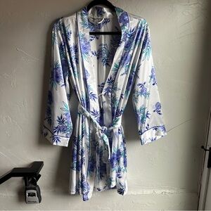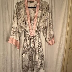 Elegant satin robe with floral design. Soft and luxurious feel. Ideal for relaxation.