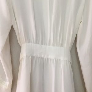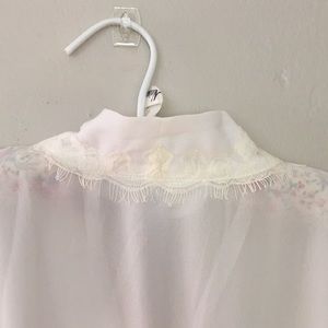 Sheer white robe (you can see my hand through fabric in pic #8) with lace at collar and cuffs. Inner tie and attached outer tie.
