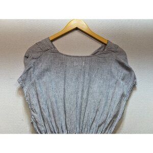 Morgan Taylor Women V Neck Linen Smocked Top Short Sleeve Sz L White Gray Stripe