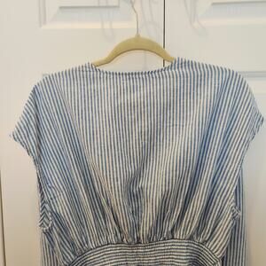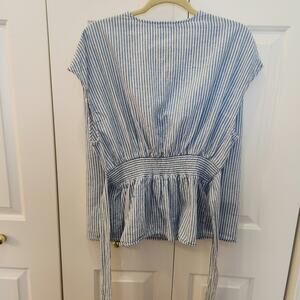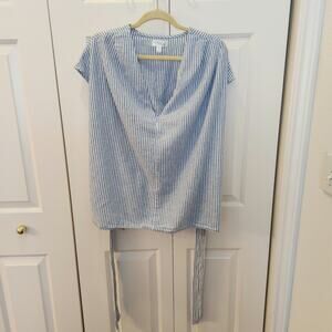 Morgan Taylor Womens XL Sleeveless Top Blue and White Vertical Strip, roushed waist in back front or back tie detail