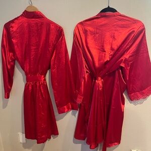 Luxurious satin robe and nightgown 3 piece set. Vibrant red color. Ideal for relaxation or special moments.