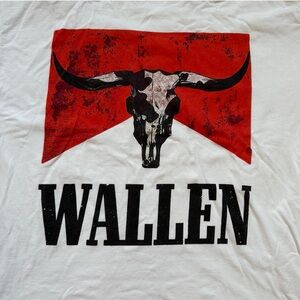 White Morgan Wallen tee featuring a bold skull graphic on the front – perfect for fans who like their country with a little edge.