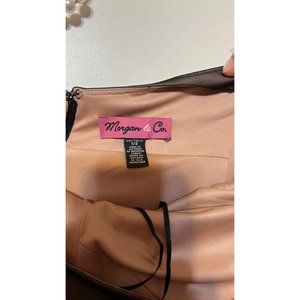 This beautiful Morgan and Co. dress is in very gently loved, preowned condition with no visible rips or stains. It does have some mesh overlay throughout, which has a nude backing. So it gives the appearance of being see-through without actually being see-through. It is perfect for any formal occasion coming up. Check out my closet for more dresses!