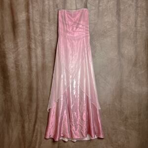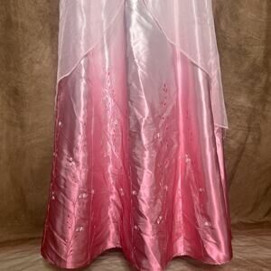 Vintage Y2K Morgan and Co. Pink Ombre Floral Embroidered Strapless Gown