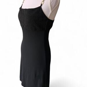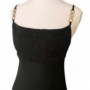 Morgan de Toi, vintage Morgan dress, Y2K black dress, Parisian fashion, made in France, gold chain strap dress, shimmer cocktail dress, 2000s clubwear, French brand, minimalist glam, party dress, slip dress, chic evening dress