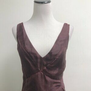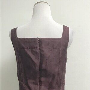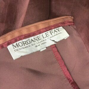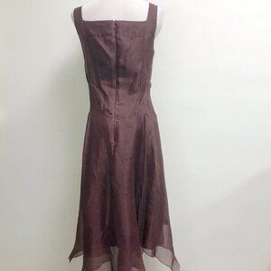 Morgane Le Fay maroon red silk organza sleeveless midi party dress made in USA M