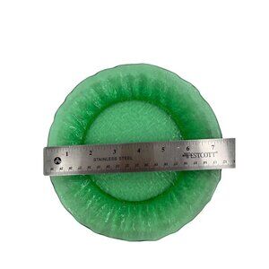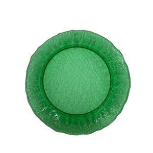 Elevate your dining experience with this set of four vintage green depression glass plates. Each plate features a textured rim and center, adding an elegant touch to your table setting. The durable glass construction ensures long-lasting use, while the vibrant green color brings a pop of color to any meal.