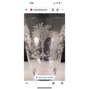 A beautiful Set of 5 hand blown glass iced tea goblets by Morgantown Glass with an etched Mayfaire pattern.