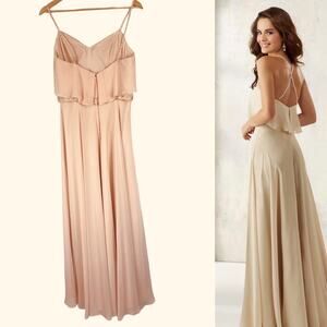 Mori Lee 21507 Blush Bridesmaid Formal Chiffon Gown Maxi Dress Size 12