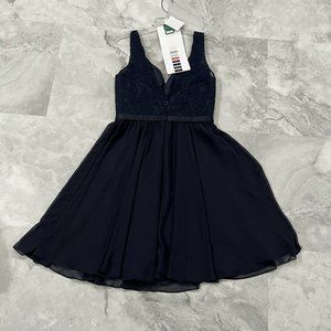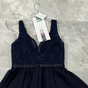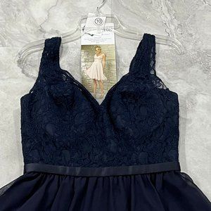 Mori Lee 31054 Bridesmaid Dress Size 10 Navy Blue Lace with Matching Chiffon