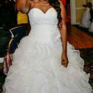 There is no damage to the dress. The dress is in really good condition. It was only worn once and kept in a bag. For all three items it's $600. For just the wedding gown is $500 or best offer.