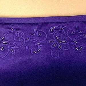 Mori Lee Madeline Gardiner Purple Satin Midi Evening Gown 5/6 Spaghetti Straps