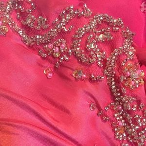 Bright pink, mermaid fit, strapless, corset back. Gorgeous beading detail. Worn once.
