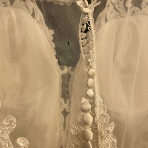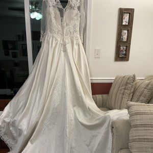 Beautiful Long sleeve satin ball gown scalloped lace