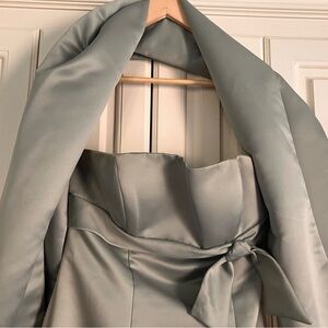 Mori Lee Size 8 Sage Satin Strapless Long Formal Prom Wedding Guest Gown With Sash