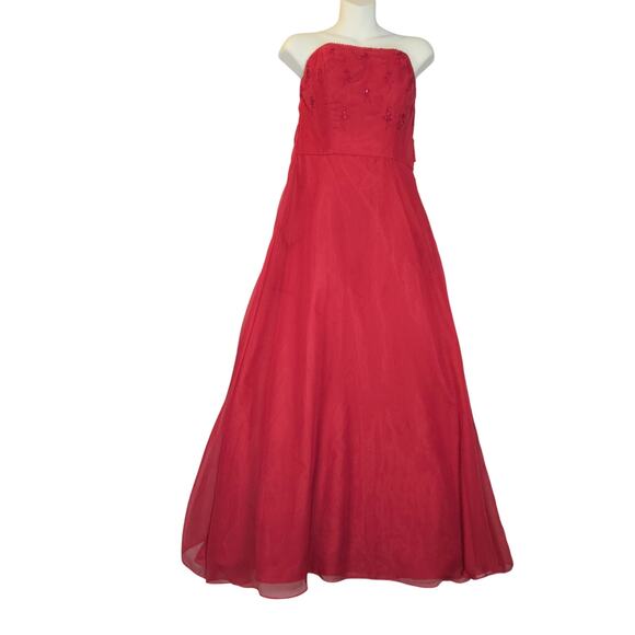 Mori Lee by Madeline Gardner Womens 7/8 Maxi Dress Strapless Prom Formal Gown. Sequins in floral pattern on bodice. Light boning. Back Zipper Closure. In good, pre-owned condition with no noted rips, tears or stains. 1 minor thread pull across back below waist, in the overlayer.