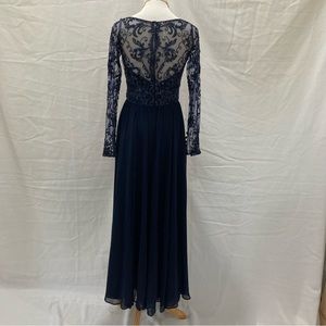 Morilee Prom Navy Sheer Long sleeve Chiffon Gown Women’s Dress Size S Formal.