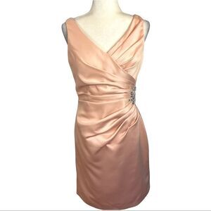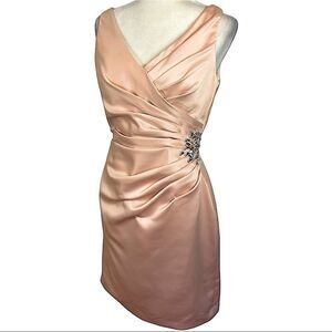 Elegant Mori Lee dress with ruched design and brooch detail. Perfect condition!