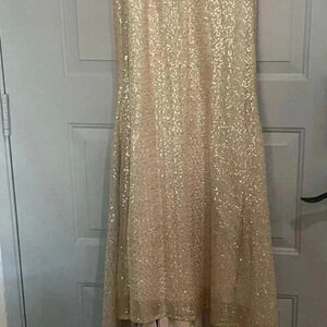 MoriLee Gold Sequin Gown Sweetheart Neckline Illusion Size 6