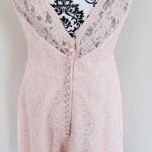 Gorgeous peachy pink lace dress that buttons down the back and has a built in bra. This would be perfect for special occasions or even school dances