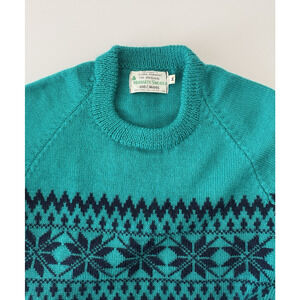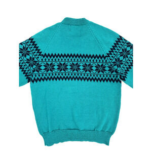 Moriarty Ski Sweater M Turquoise Blue Wool Handmade Vermont Snowflakes Fair Isle