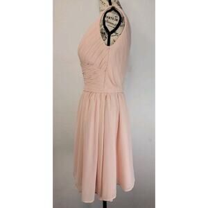 Morilee Madeline Gardner 8 babydoll Mini Dress One shoulder Layered Blushed