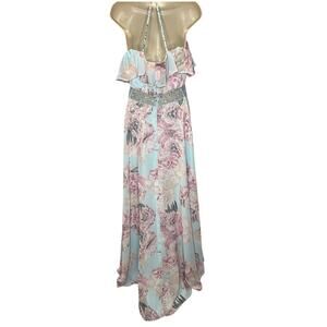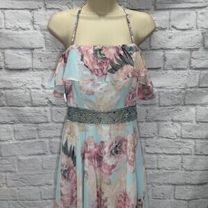 Morilee Prom Dress 99024 Gardner Size 6 Blue Floral Beaded Off Shoulder Ruffle