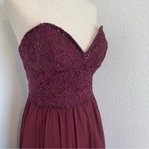Morilee by Madeline Gardner Dressy Strapless Burgundy Beaded Gown SZ 8