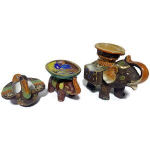Moriyama Mori Machi and Takito Ceramic Figurines Elephants and Pelican Set of 3