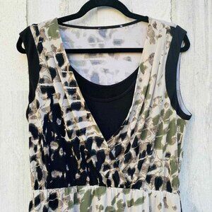 Morning Lady Sheath Dress Womens Medium Black Green Lined Camo Print