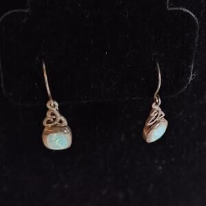 Morningflower Knot Earrings white Opal Sterling Silver French Hook Ear Wire 925