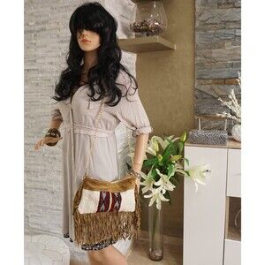Moroccan Kilim Handira Genuine Suede Leather Fringe Tassel Clutch Bag Shoulder Bag Purse