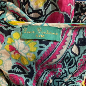 glam kaftan dress, perfect as resort wear with bell sleeves and multicolour printed patterns. The cotton dress has a nice flow to it, and the patterns are assembled against a gradient blue backdrop. The dress is adorned with pom-poms on the sleeves and embellished motifs enhancing the overall look. This is a go-to piece for a style statement- wear it out at the beach, for a pool party or a summer lunch. You can also use it as a cover-up on swimwear, pair it with slippers and a hat for a casual style.