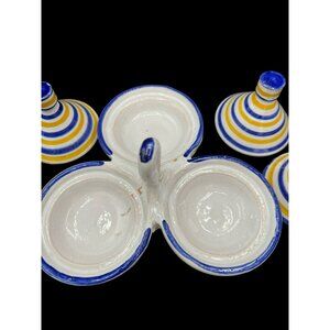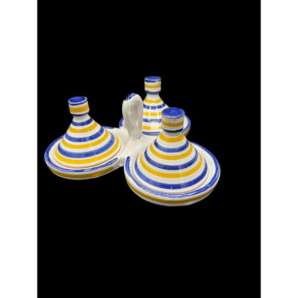 Moroccan Spice Tagine Trio Spice Holder Vintage Handmade Yellow and Blue Ceramic